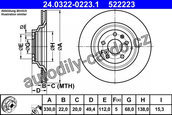Brzdový kotouč ATE 24.0322-0223 (AT 522223) - Power Disc