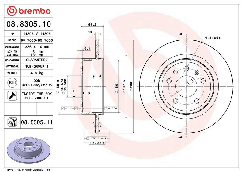 Brzdový kotouč BREMBO 08.8305.11