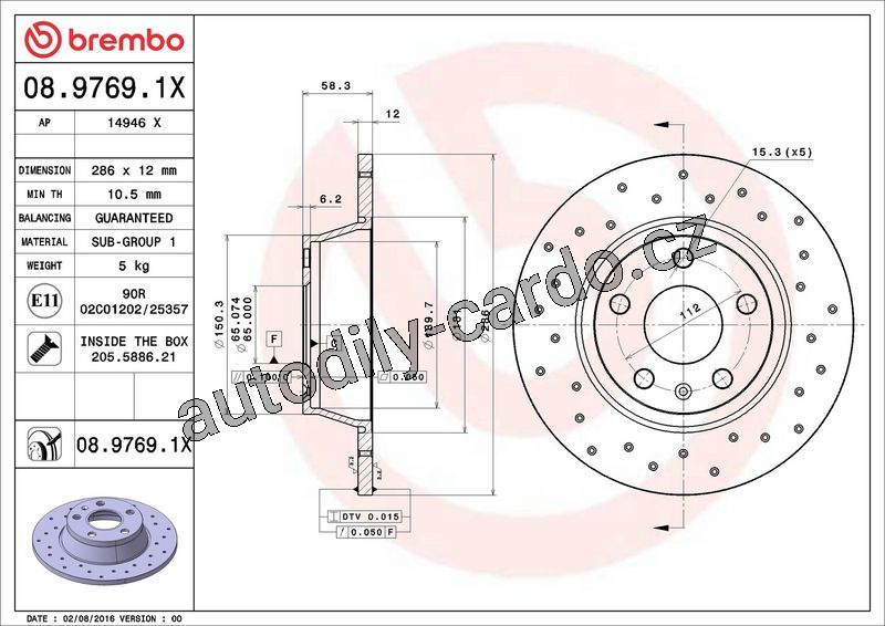 Brzdový kotouč BREMBO 08.9769.1X