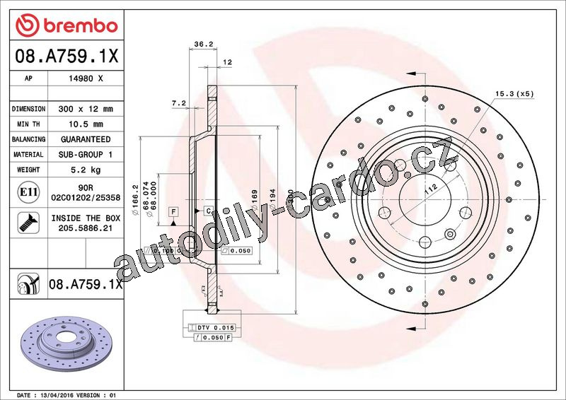 Brzdový kotouč BREMBO 08.A759.1X