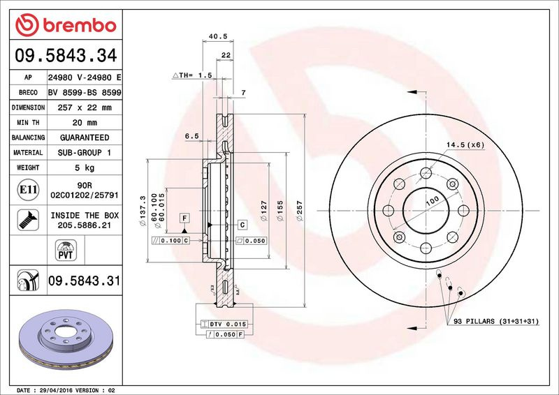 Brzdový kotouč BREMBO 09.5843.31