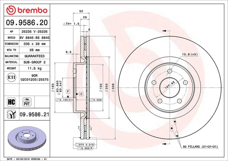 Brzdový kotouč BREMBO 09.9586.21