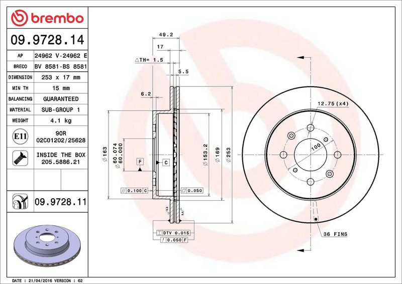 Brzdový kotouč BREMBO 09.9728.11