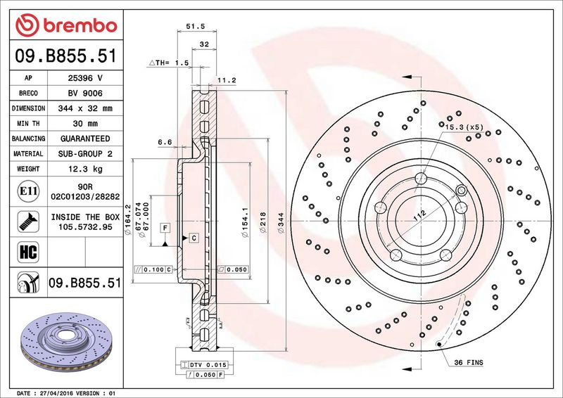 Brzdový kotouč BREMBO 09.B855.51