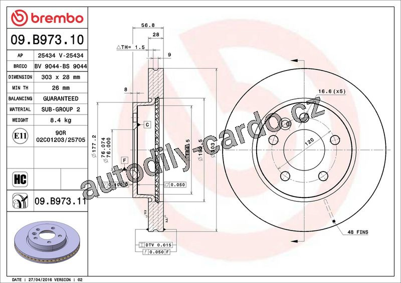 Brzdový kotouč BREMBO 09.B973.11