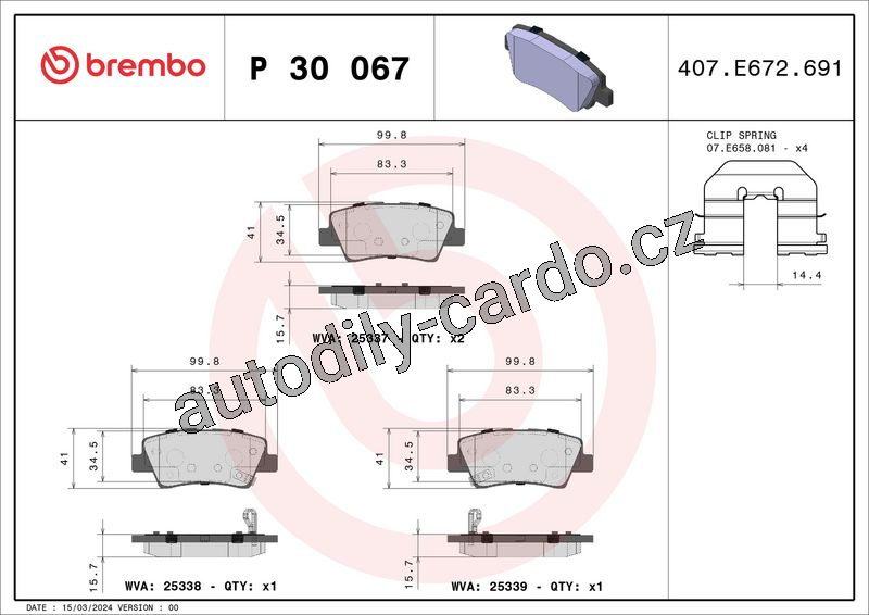 Sada brzdových destiček BREMBO P30067