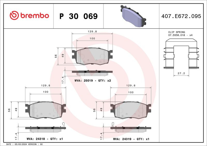 Sada brzdových destiček BREMBO P30069