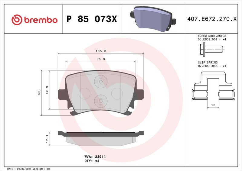 Sada brzdových destiček BREMBO P85073X