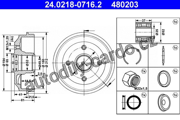 | Vnější průměr brzdového bubnu [mm]: | 212,0 |