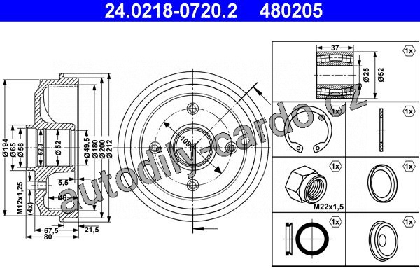 Brzdový buben ATE 24.0218-0720 (AT 480205) - CITROËN, PEUGEOT