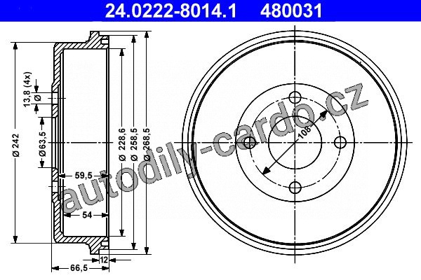 Brzdový buben ATE 24.0222-8014 (AT 480031) - FORD