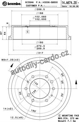 Vnější průměr brzdového bubnu [mm]: 270