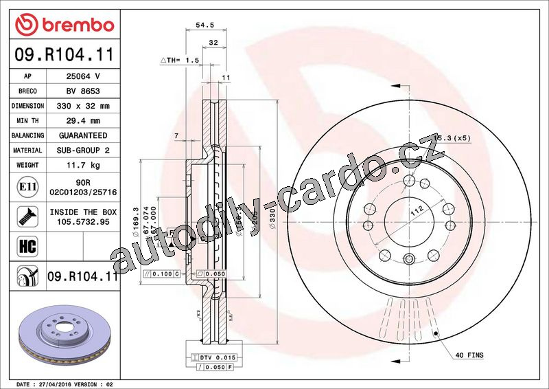 Brzdový kotouč BREMBO 09.R104.11 - MERCEDES-BENZ