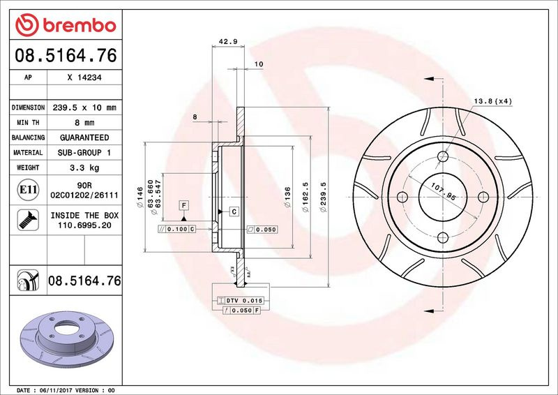Brzdový kotouč BREMBO MAX 08.5164.76 - FORD