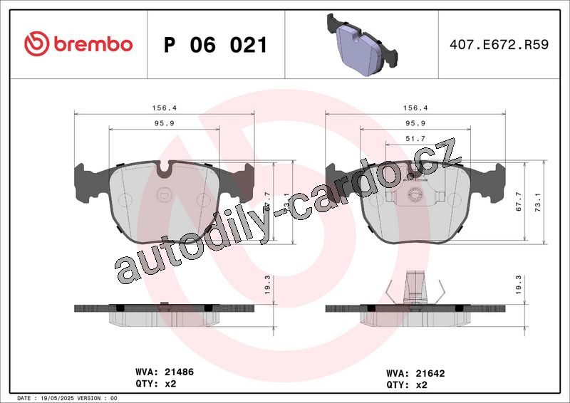 Sada brzdových destiček BREMBO P06021 - BMW