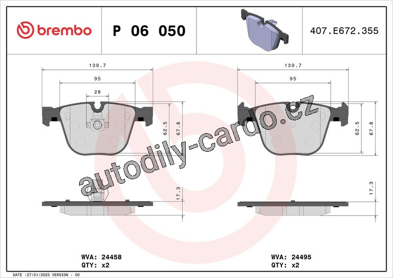 Sada brzdových destiček BREMBO P06050 - BMW