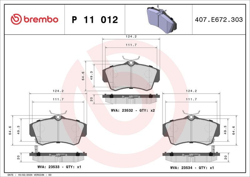 Sada brzdových destiček BREMBO P11012 - CHRYSLER