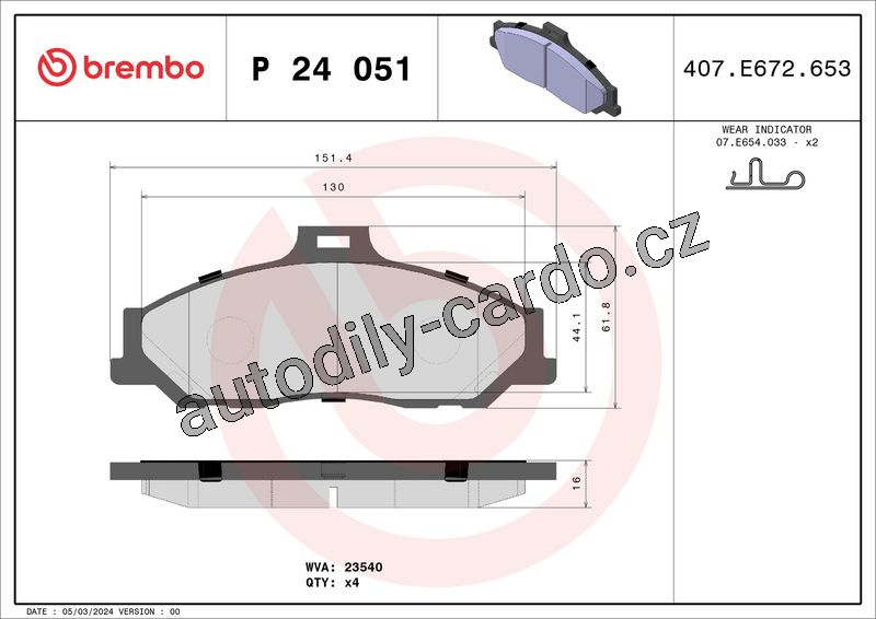 Sada brzdových destiček BREMBO P24051 - FORD, MAZDA
