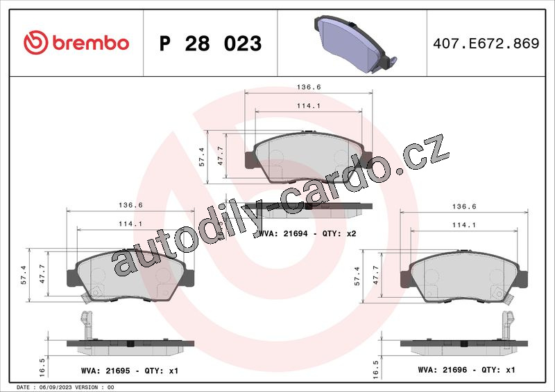Sada brzdových destiček BREMBO P28023 - HONDA