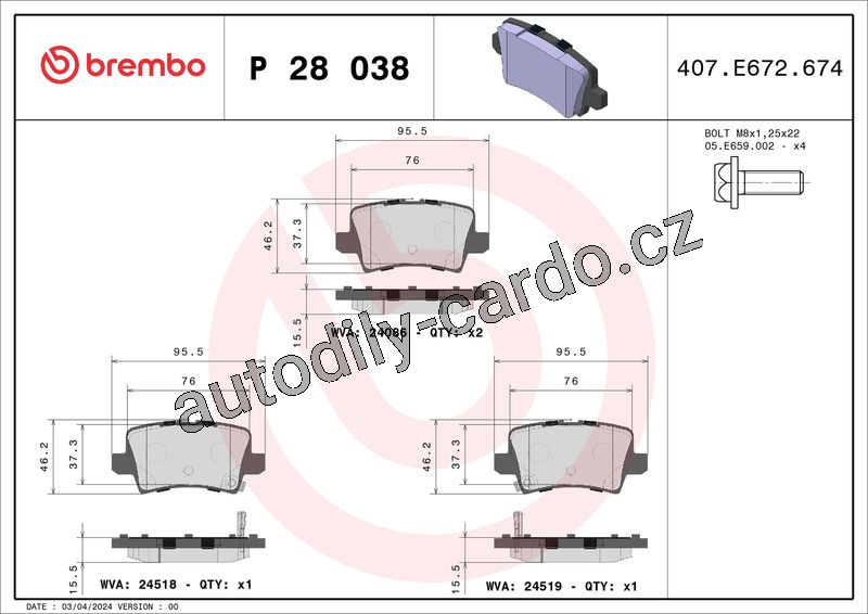 Sada brzdových destiček BREMBO P28038 - HONDA