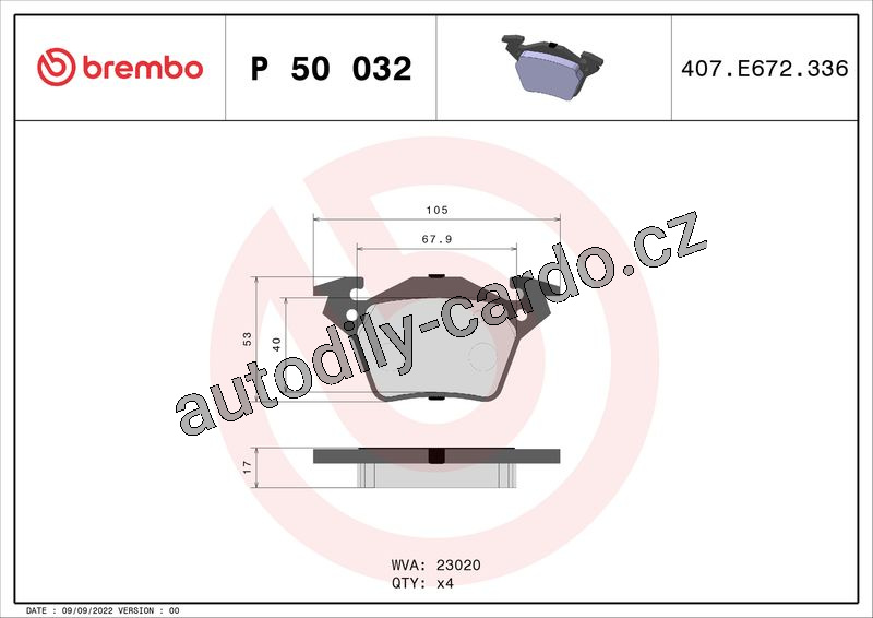 Sada brzdových destiček BREMBO P50032 - MERCEDES-BENZ