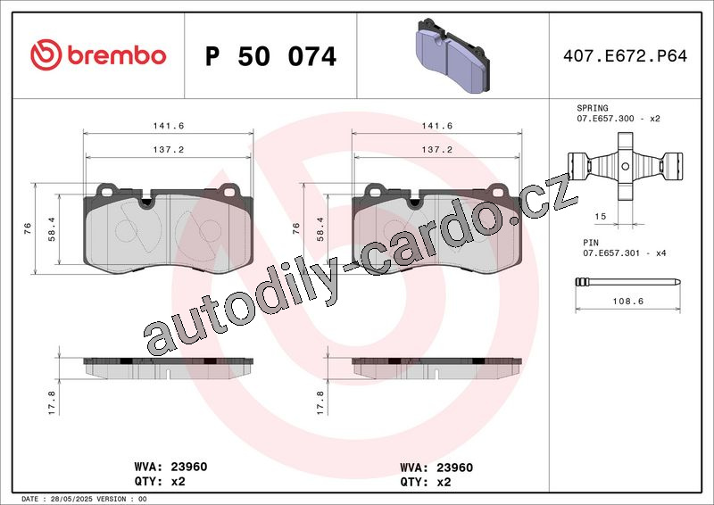 Sada brzdových destiček BREMBO P50074