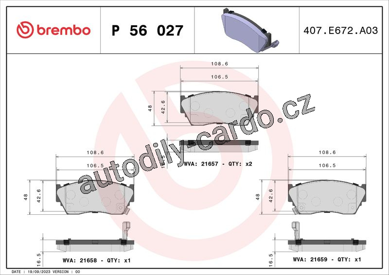 Sada brzdových destiček BREMBO P56027 - NISSAN