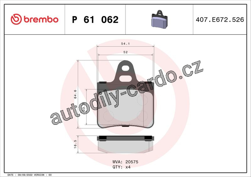 Sada brzdových destiček BREMBO P61062 - CITROËN
