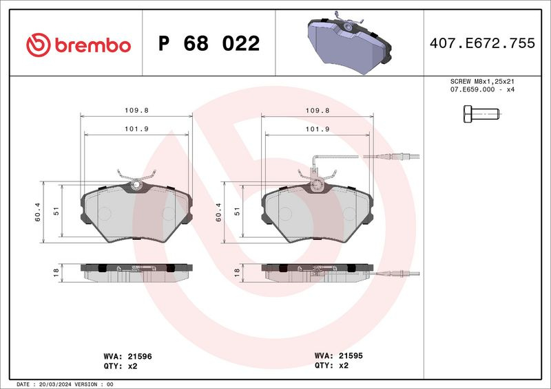 Sada brzdových destiček BREMBO P68022 - RENAULT