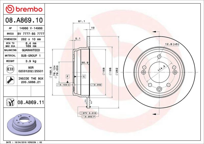 Brzdový kotouč BREMBO 08.A869.10