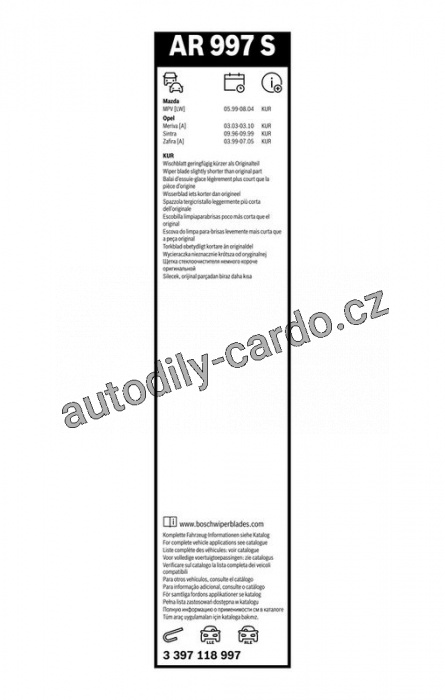 | Stěrače - provedení: | Stěrač-Flachbalkenwischblatt |