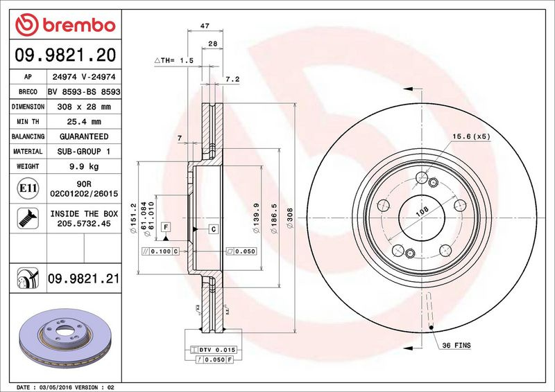 Brzdový kotouč BREMBO 09.9821.21