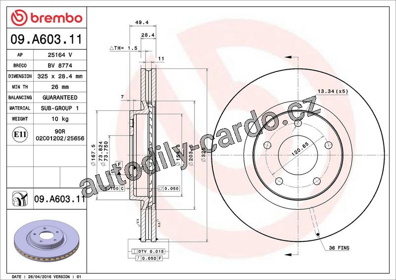 Brzdový kotouč BREMBO 09.A603.11