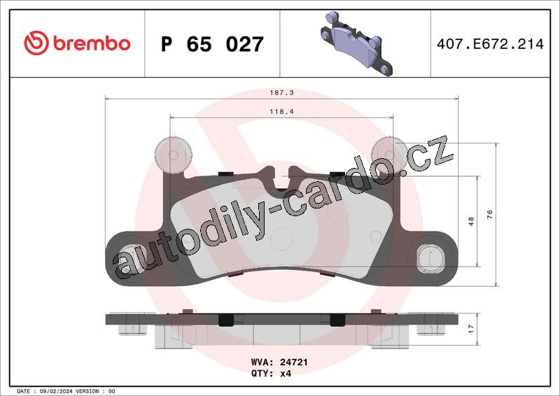 Sada brzdových destiček BREMBO P65027