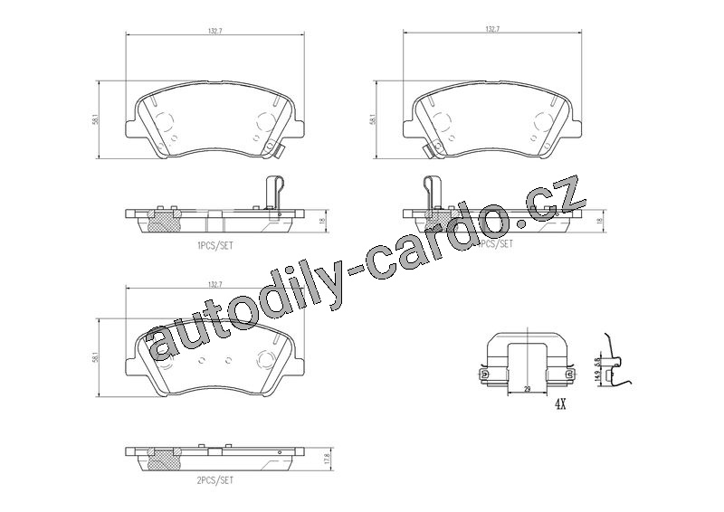 Sada brzdových destiček obsahuje vždy kompletní obložení pro celou nápravu (2 kotouče).